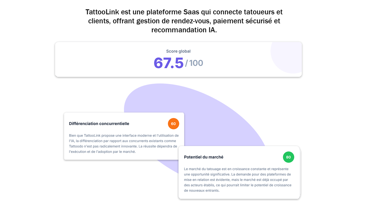 Notre IA spécialisée analyse ton plan d’idée pour t’indiquer si ton projet a du potentiel. Évalue la concurrence, le marché, les opportunités etc pour avancer avec confiance.